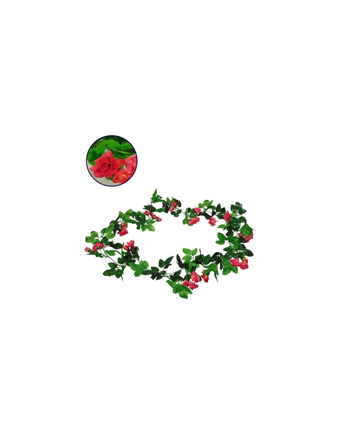 GloboStar® 09017 Τεχνητό Κρεμαστό Φυτό Διακοσμητική Γιρλάντα Μήκους 2.2 μέτρων με 33 X Μικρά Τριαντάφυλλα Φούξια