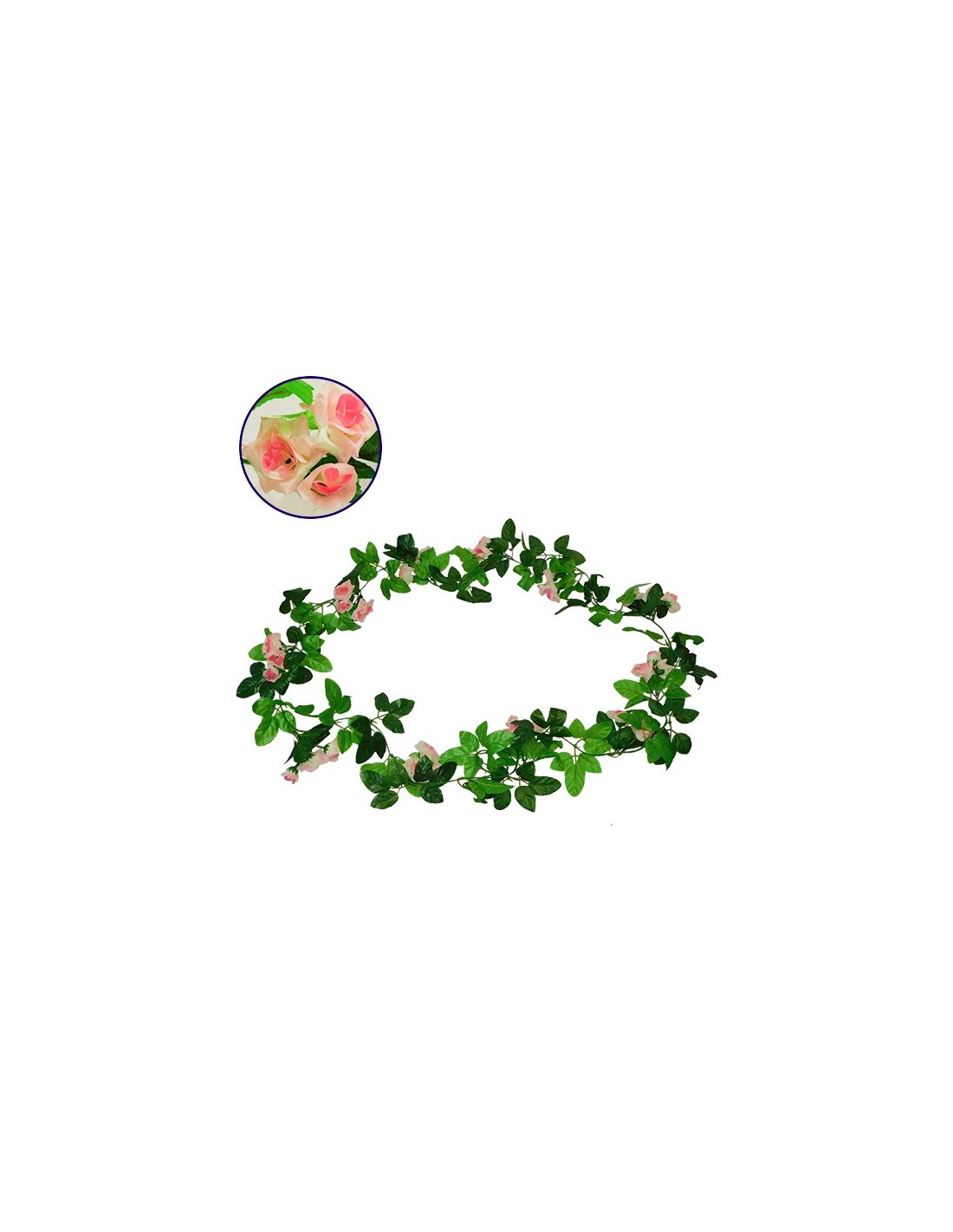 LedkingGloboStar® 09018 Τεχνητό Κρεμαστό Φυτό Διακοσμητική Γιρλάντα Μήκους 2.2 μέτρων με 33 X Μικρά Τριαντάφυλλα Ροζ Λευκά