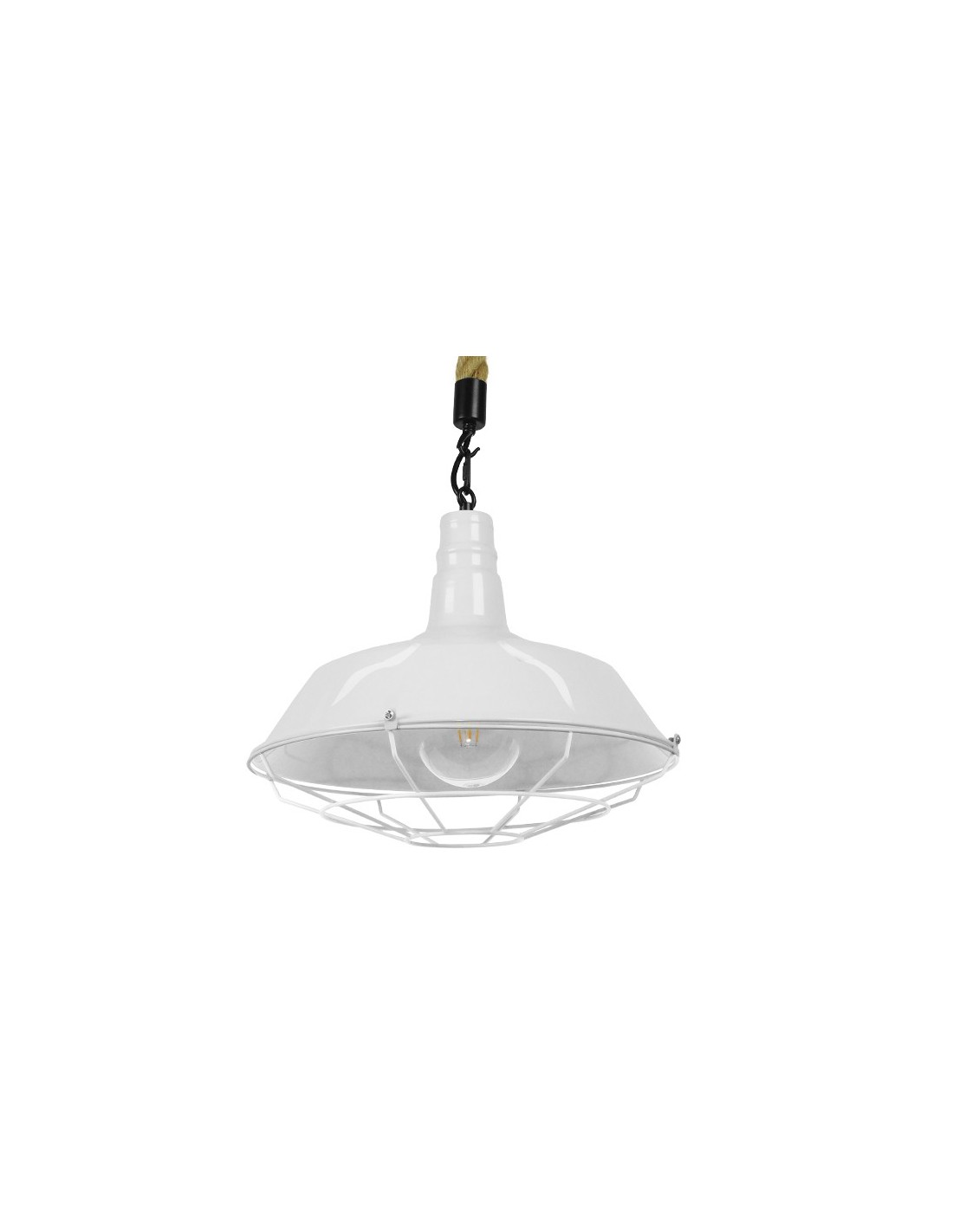LedkingVintage Industrial Κρεμαστό Φωτιστικό Οροφής Μονόφωτο Λευκό Γυαλιστερό Μεταλλικό Καμπάνα Πλέγμα με Μπεζ Σχοινί Φ36 GloboStar PUPPET 01412