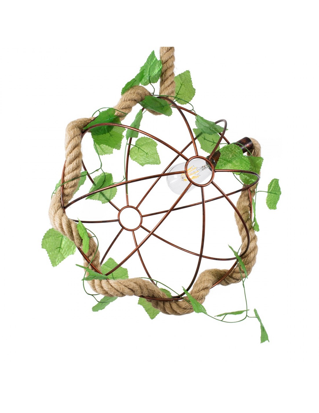 GloboStar® BRADLEY 01661 Vintage Κρεμαστό Φωτιστικό Οροφής Μονόφωτο 1 x E27 Πλέγμα Καφέ Σκουριά με Μπεζ Σχοινί Φ42 x Υ42cm