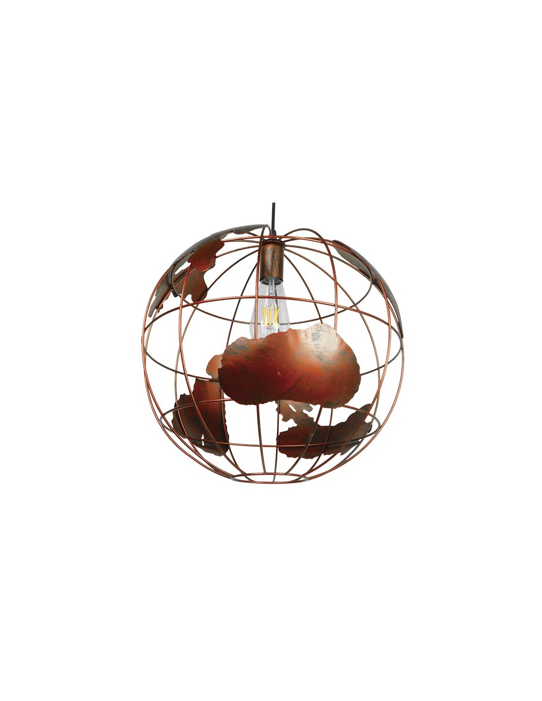 LedkingGloboStar® EARTH 01665 Vintage Industrial Κρεμαστό Φωτιστικό Οροφής Μονόφωτο Καφέ Σκουριά Μεταλλικό Πλέγμα Φ40 x Υ40cm