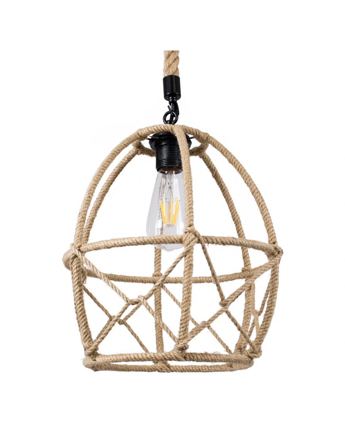 GloboStar® TELAN 01615 Vintage Κρεμαστό Φωτιστικό Οροφής Μονόφωτο 1 x E27 Πλέγμα με Μπεζ Σχοινί Φ30 x Υ38cm