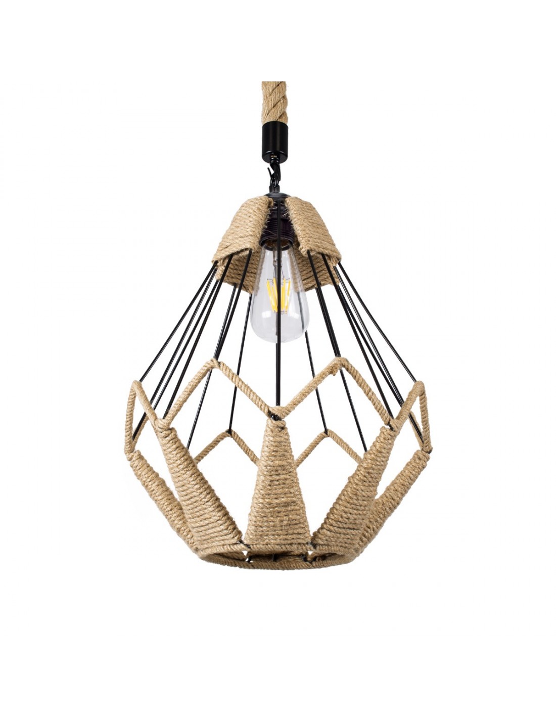 GloboStar® CONICAL 01617 Vintage Κρεμαστό Φωτιστικό Οροφής Μονόφωτο 1 x E27 Πλέγμα με Μπεζ Σχοινί Φ30 x Υ40cm