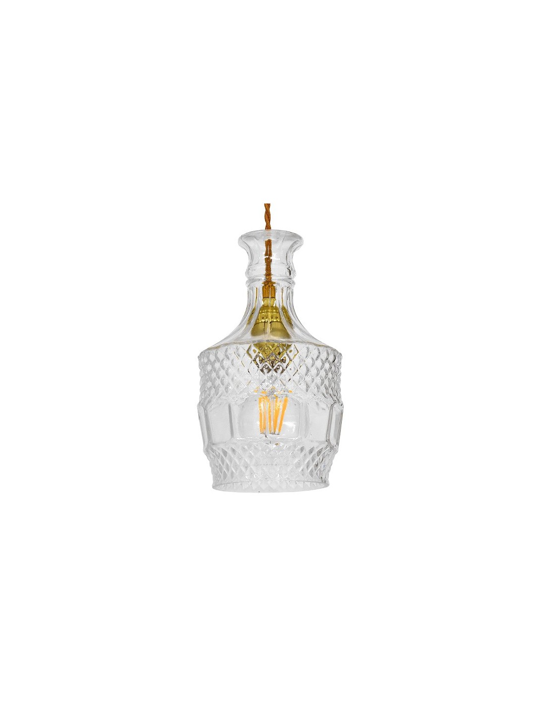 LedkingGloboStar® WHISKEY 01513 Vintage Κρεμαστό Φωτιστικό Οροφής Μονόφωτο Γυάλινο Διάφανο Φ13 x Υ22cm