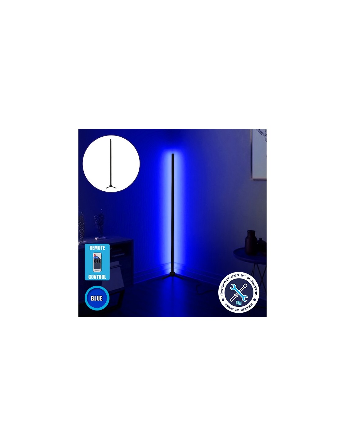 LedkingΜοντέρνο Minimal Επιδαπέδιο Μαύρο Φωτιστικό 100cm LED 16 Watt με Ασύρματο Χειριστήριο RF & Dimmer Μπλε GloboStar ALIEN Design GLOBO-100-6