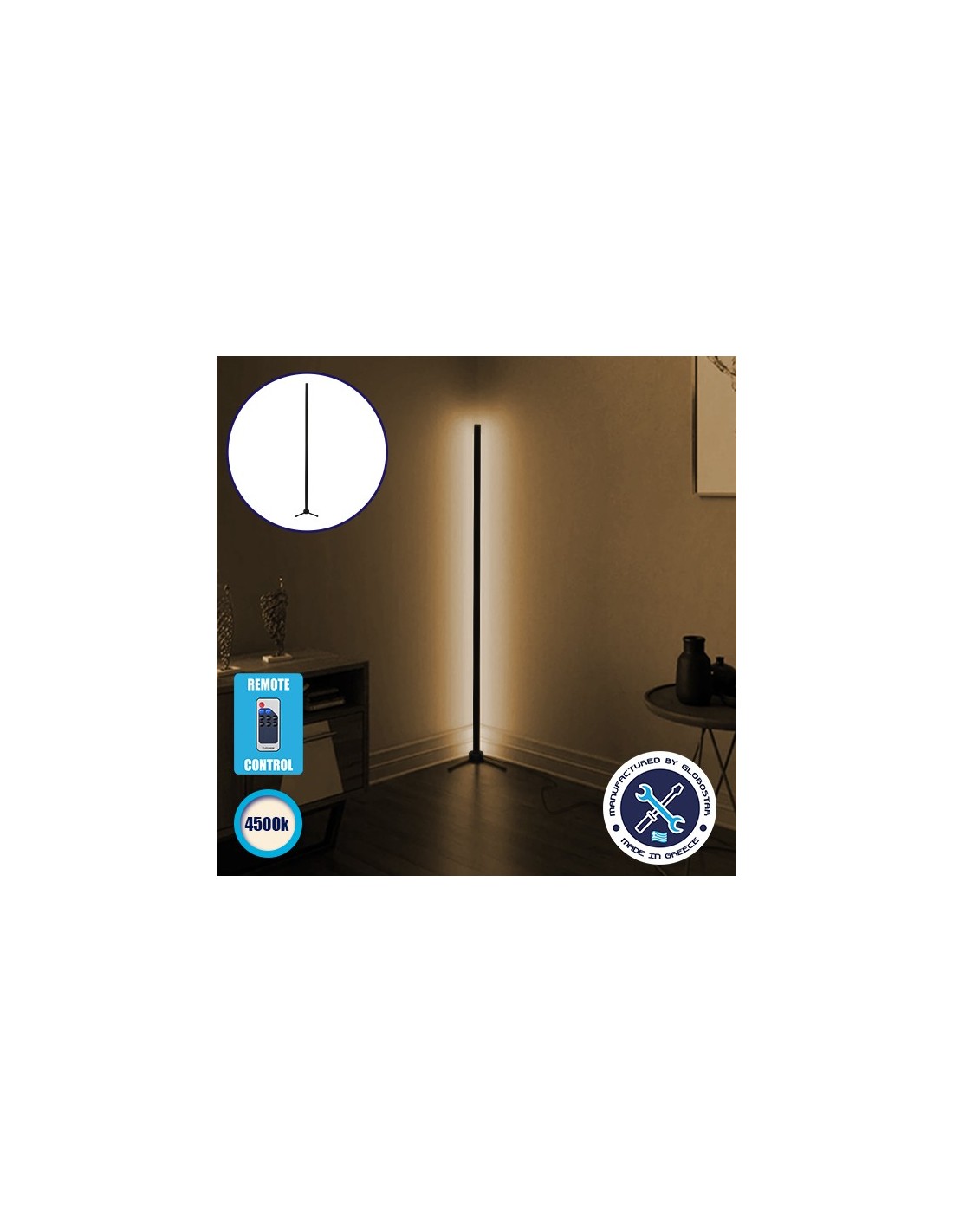 Μοντέρνο Minimal Επιδαπέδιο Μαύρο Φωτιστικό 150cm LED 24 Watt με Ασύρματο Χειριστήριο RF & Dimmer Φυσικό Λευκό 4500k GloboStar ALIEN Design GLOBO-150-2