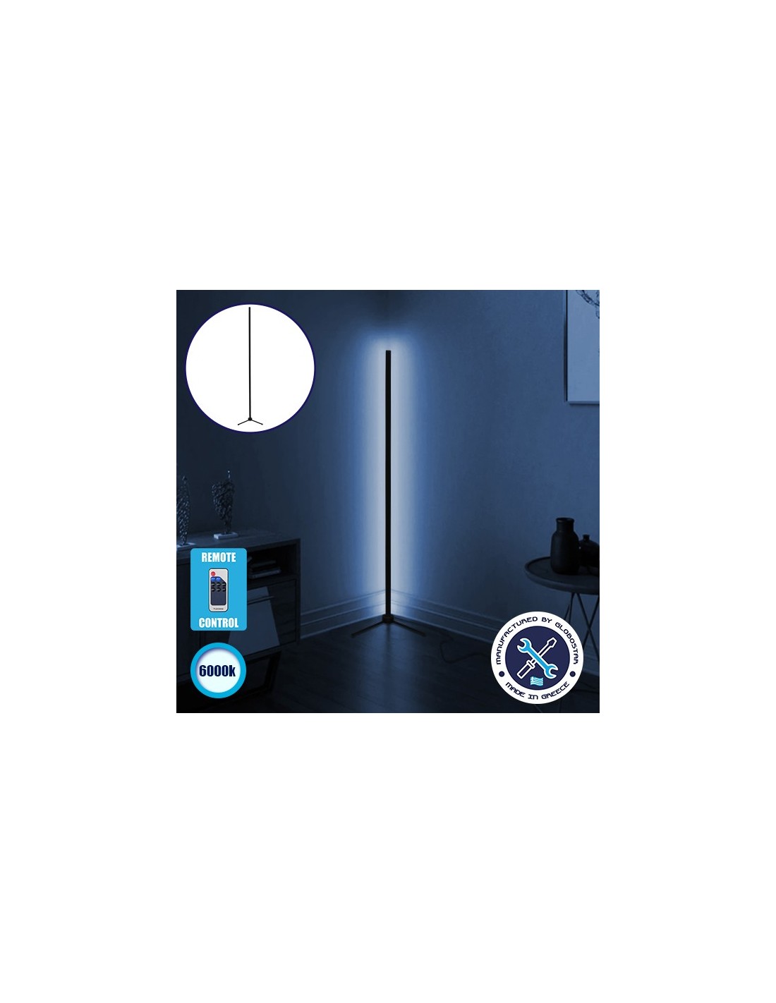 LedkingΜοντέρνο Minimal Επιδαπέδιο Μαύρο Φωτιστικό 250cm LED 40 Watt με Ασύρματο Χειριστήριο RF & Dimmer Ψυχρό Λευκό 6000k GloboStar ALIEN Design GLOBO-250-1