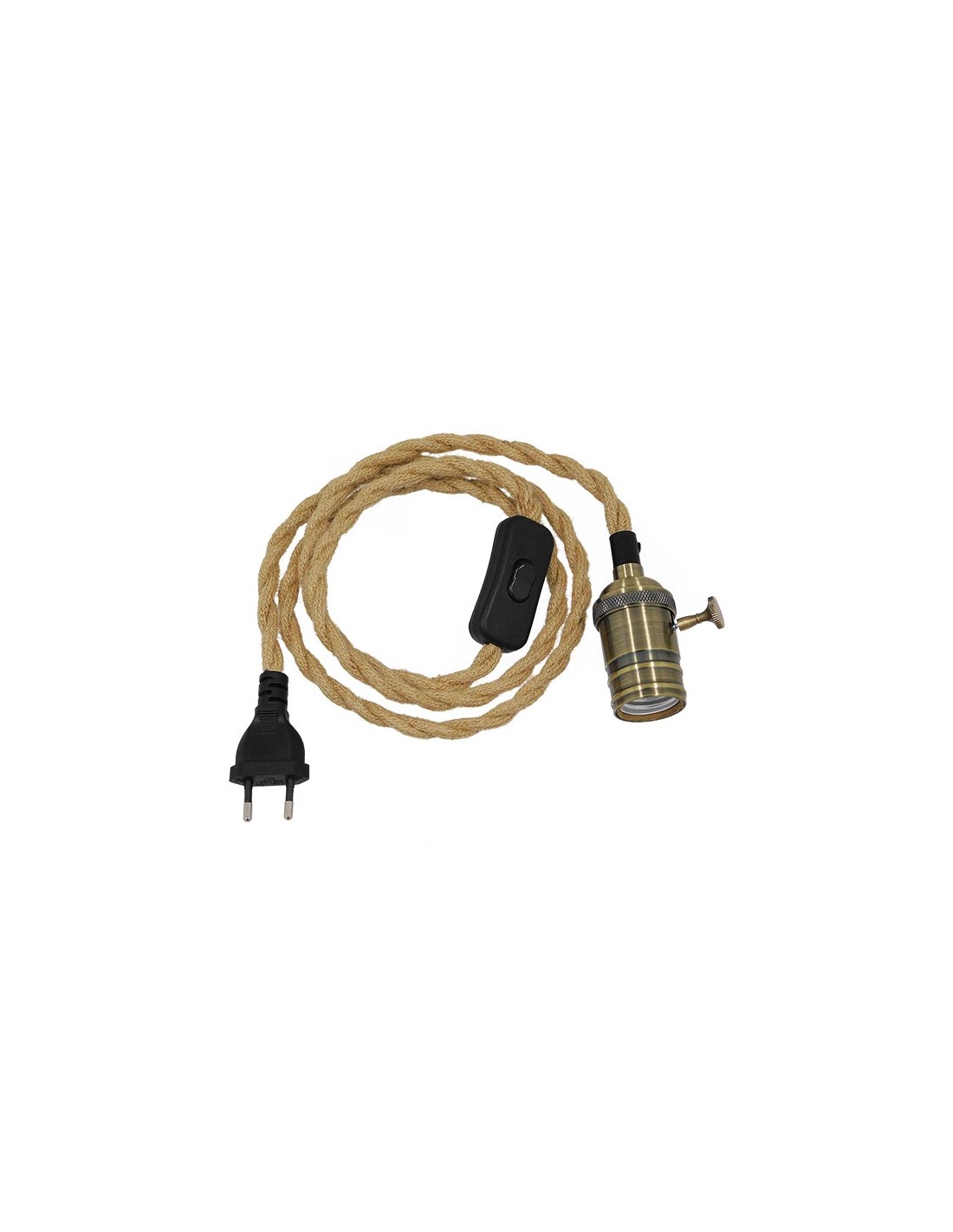 Κρεμαστό Φωτιστικό Whip με Μπρούτζινο Ντουί E27 - Μαύρο Διακόπτη - Μαύρη Πρίζα και Μπέζ Πλεκτό Καλώδιο 1.4m GloboStar 91041
