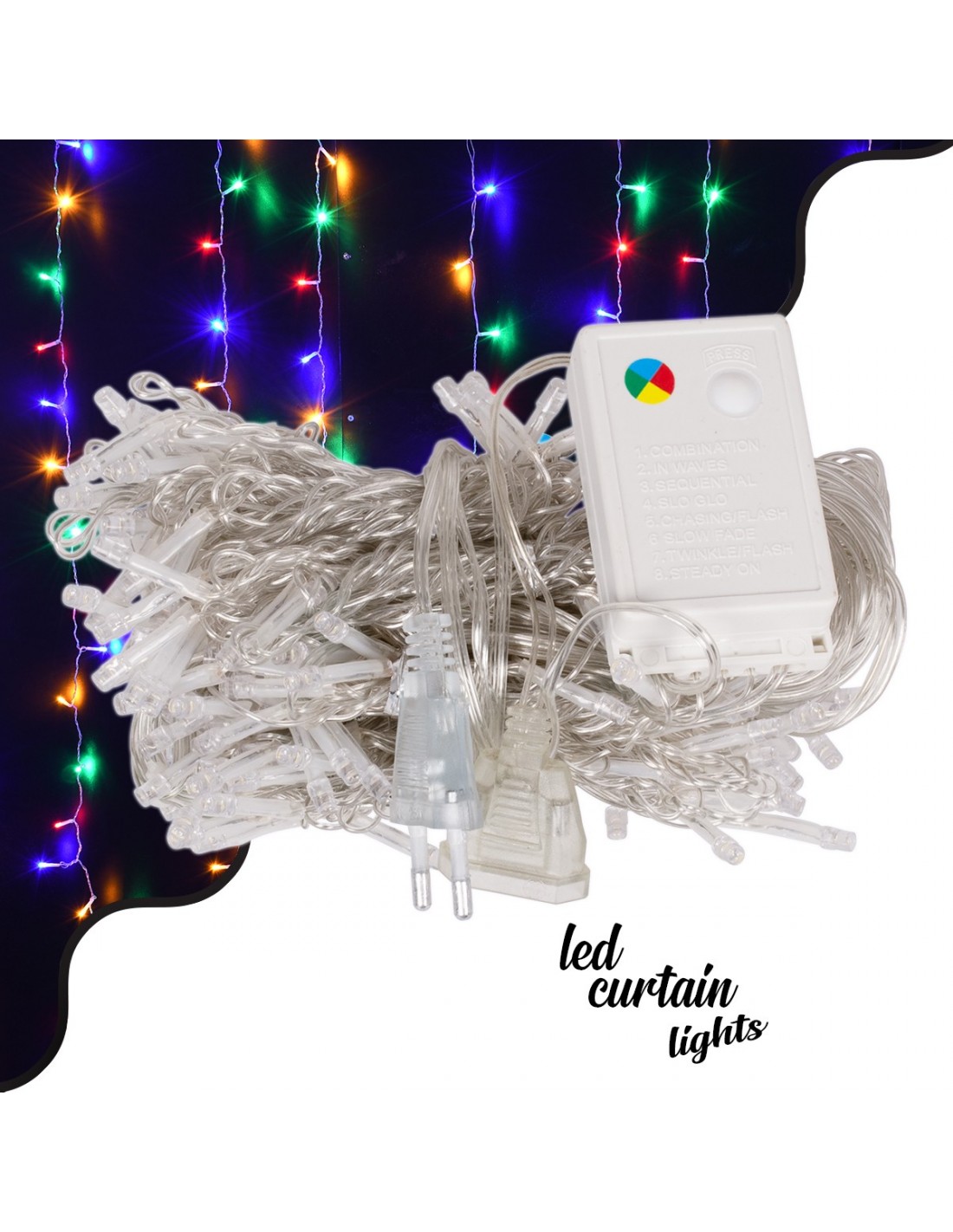 85802 Διακοσμητική Κουρτίνα 3 x 2 Μέτρα με Controller 8 Προγραμμάτων Φωτισμού - Επεκτεινόμενη 240 LED 6W AC 230V με Διάφανο Καλώδιο & EU Πρίζα IP20 Πολύχρωμο RGB Μ3 x Υ2m
