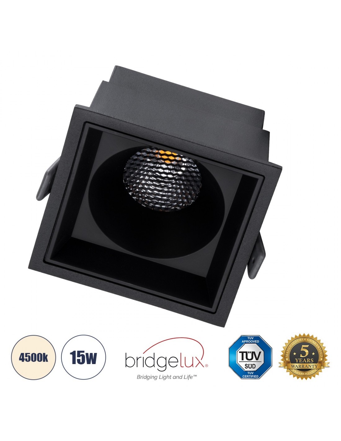 GloboStar® PLUTO-B 60280 Χωνευτό LED Spot Downlight TrimLess Μ10.4xΠ10.4cm 15W 1950lm 38° AC 220-240V IP20 Μ10.4 x Π10.4 x Υ6.5cm - Τετράγωνο - Μαύρο & Anti-Glare HoneyComb - Φυσικό Λευκό 4500K - Bridgelux COB - 5 Years Warranty