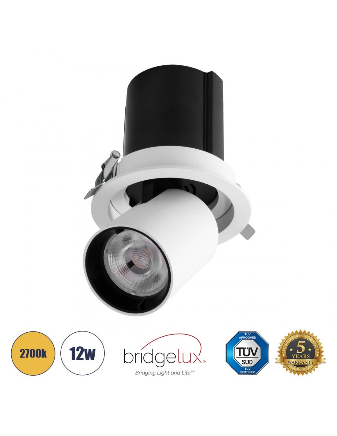 GloboStar® VIRGO-M 60307 Χωνευτό LED Spot Downlight TrimLess Φ11cm 12W 1500lm 36° AC 220-240V IP20 Φ11cm x Υ11.5cm - Στρόγγυλο - Λευκό με Μαύρο Κάτοπτρο - Θερμό Λευκό 2700K - Bridgelux COB - 5 Years Warranty