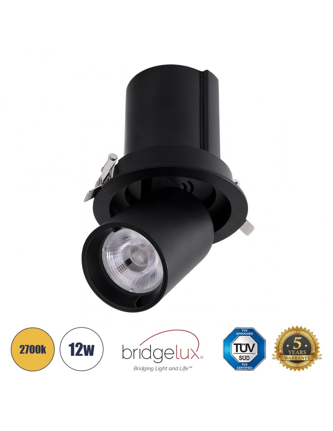 GloboStar® VIRGO-M 60309 Χωνευτό LED Spot Downlight TrimLess Φ11cm 12W 1500lm 36° AC 220-240V IP20 Φ11cm x Υ11.5cm - Στρόγγυλο - Μαύρο - Θερμό Λευκό 2700K - Bridgelux COB - 5 Years Warranty