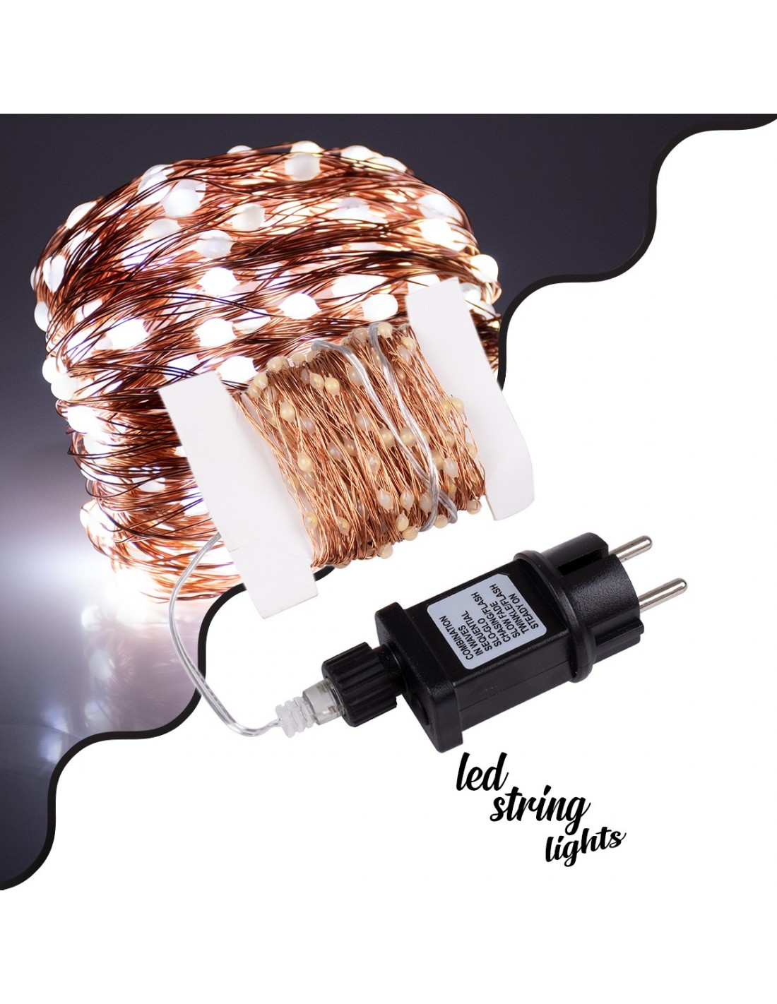 85843 Διακοσμητική Γιρλάντα 20 Μέτρα με Controller 8 Προγραμμάτων Εναλλαγών Φωτισμού - 200 LED 1.3W AC 230V με Χάλκινο Καλώδιο & Πρίζα Schuko Αδιάβροχη IP44 Ψυχρό Λευκό 6000K Μ20m