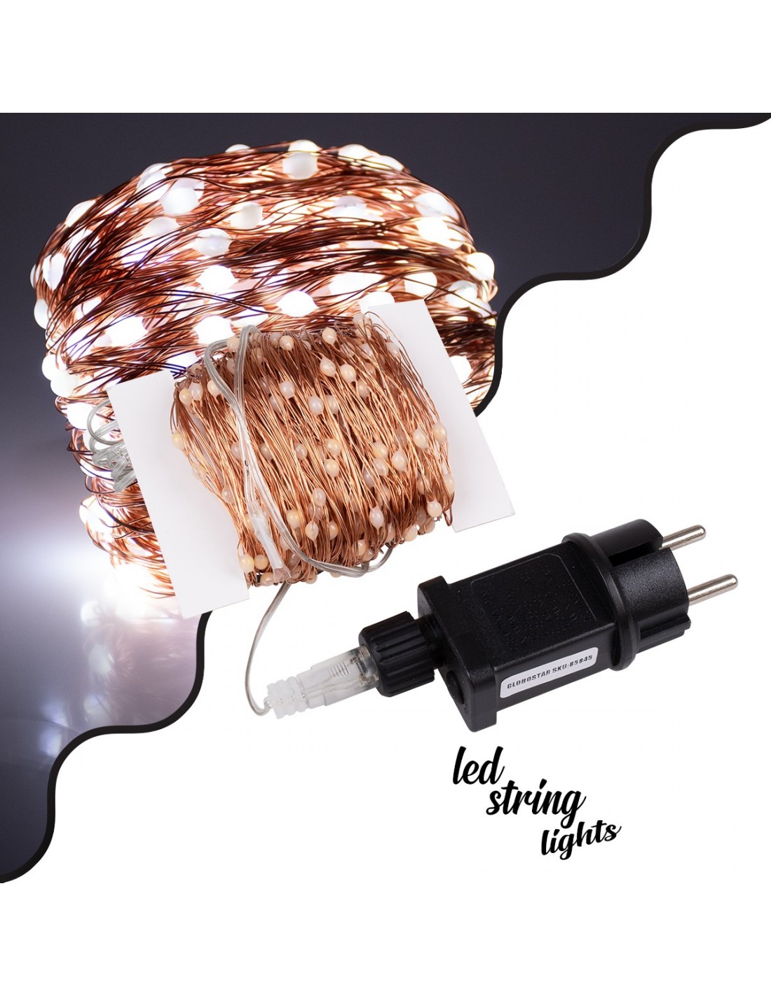 85846 Διακοσμητική Γιρλάντα 32 Μέτρα με Controller 8 Προγραμμάτων Εναλλαγών Φωτισμού - 300 LED 3.6W AC 230V με Χάλκινο Καλώδιο & Πρίζα Schuko Αδιάβροχη IP44 Ψυχρό Λευκό 6000K Μ32m