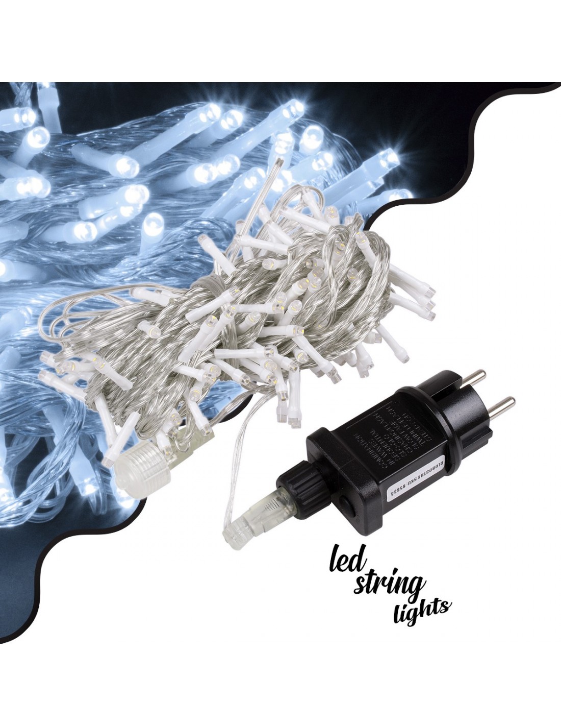 85834 Διακοσμητική Γιρλάντα 13 Μέτρα με Controller 8 Προγραμμάτων Εναλλαγών Φωτισμού - Επεκτεινόμενη 100 LED 3.6W AC 230V με Διάφανο Καλώδιο & Πρίζα Schuko Αδιάβροχη IP44 Ψυχρό Λευκό 6000K Μ13m
