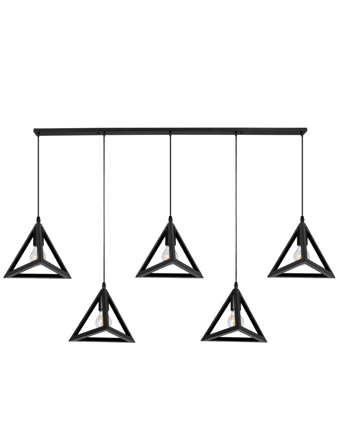 GloboStar® TRIANGLE 00608 Μοντέρνο Κρεμαστό Φωτιστικό Οροφής Πολύφωτο 5 x E27 Μαύρο Μεταλλικό Πλέγμα Μ170 x Π22 x Y130cm