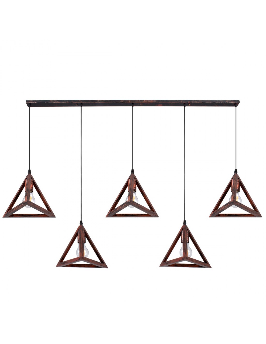 GloboStar® TRIANGLE 00609 Μοντέρνο Κρεμαστό Φωτιστικό Οροφής Πολύφωτο 5 x E27 Χάλκινο Μεταλλικό Πλέγμα Μ170 x Π22 x Y130cm
