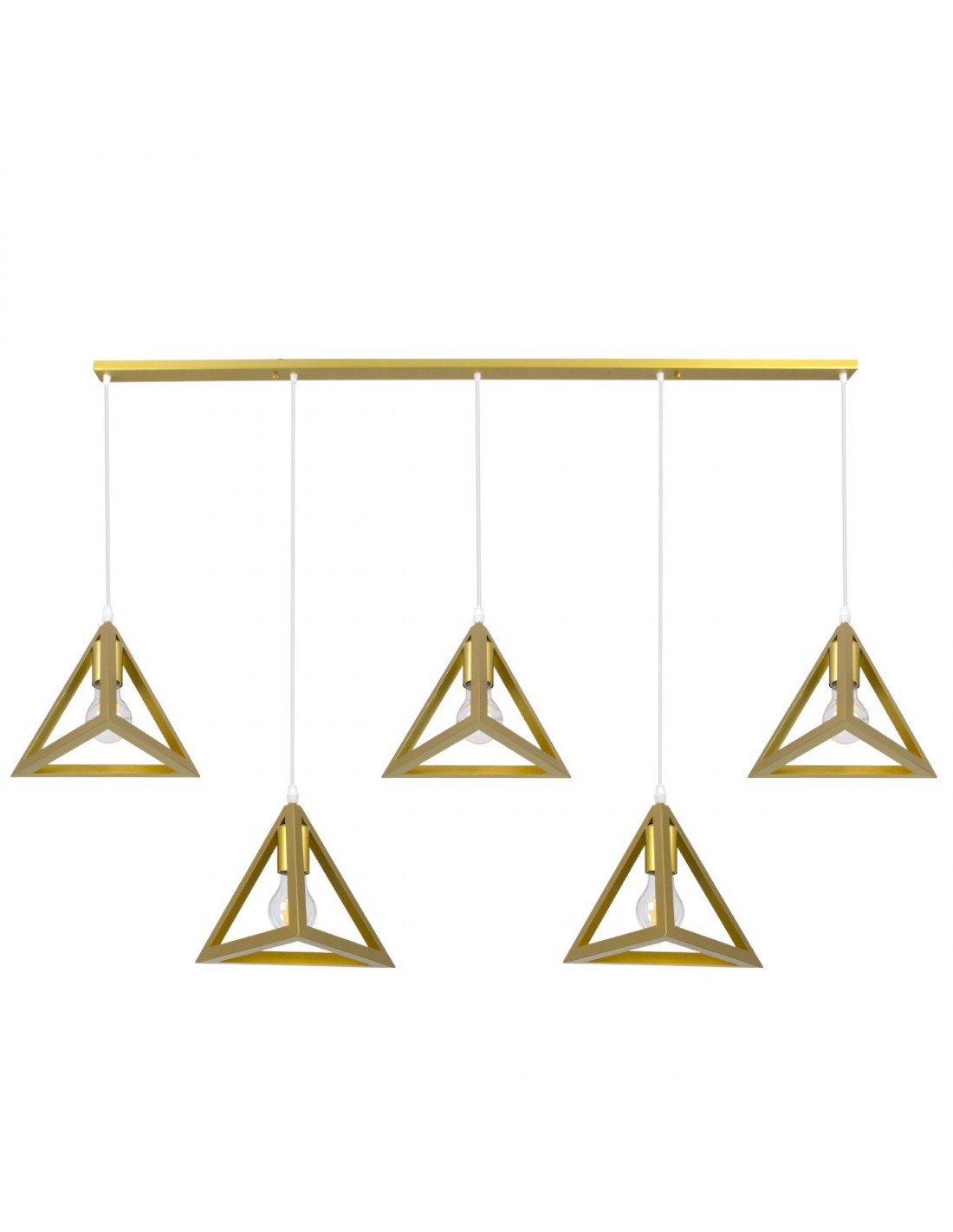 GloboStar® TRIANGLE 00610 Μοντέρνο Κρεμαστό Φωτιστικό Οροφής Πολύφωτο 5 x E27 Χρυσό Μεταλλικό Πλέγμα Μ170 x Π22 x Y130cm