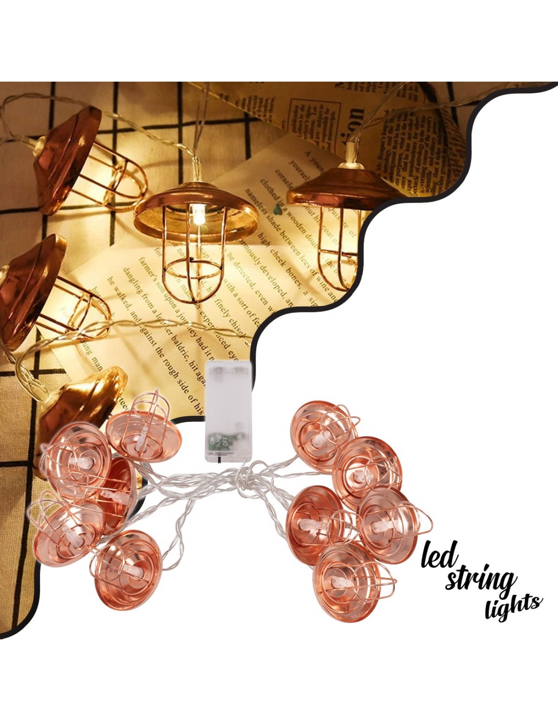 79807 Διακοσμητική Γιρλάντα Bronze Lamp 2 Μέτρα με Διακόπτη On/Off - 10 LED 1W με Μπαταρίες 2xAA & Διάφανο Καλώδιο IP20 Θερμό Λευκό 2700K Μ2m