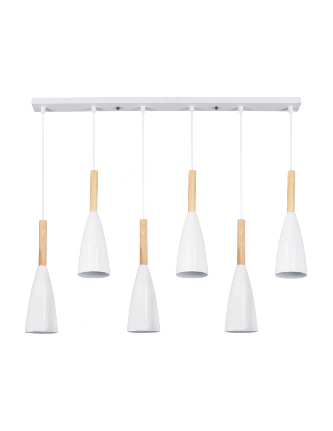 GloboStar® DILLON 00633 Μοντέρνο Κρεμαστό Φωτιστικό Οροφής Πολύφωτο 6 x E27 Λευκό Μεταλλικό Καμπάνα Μ84 x Π14 x Υ130cm