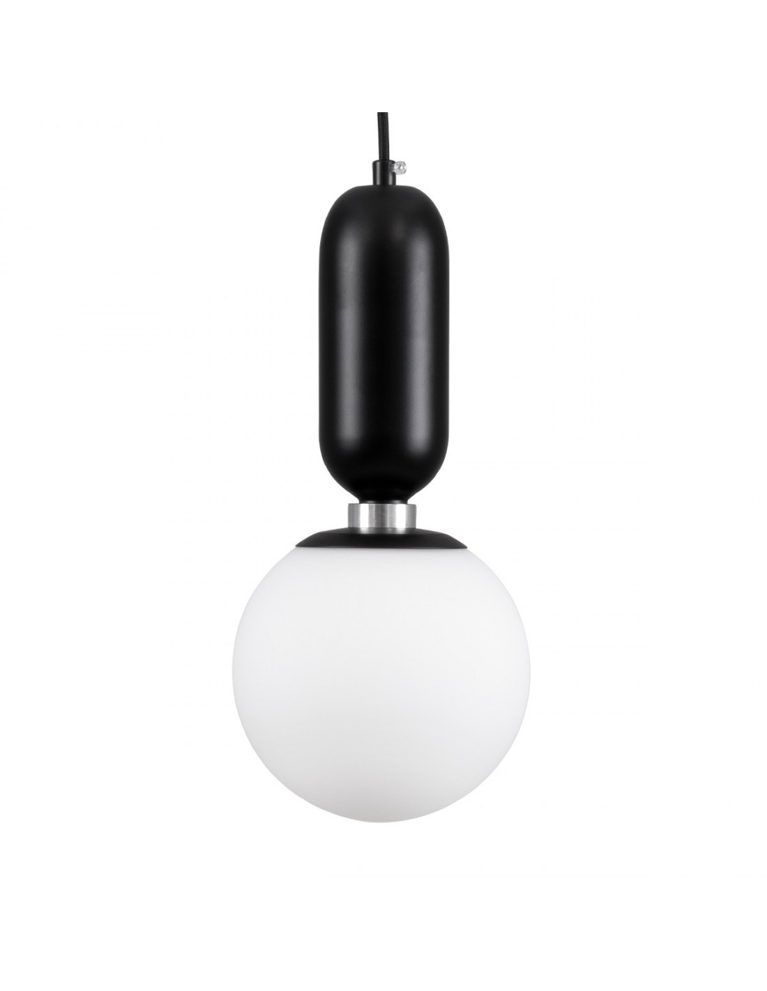 GloboStar® MAVERICK 00945 Μοντέρνο Κρεμαστό Φωτιστικό Οροφής Μονόφωτο 1 x E27 Μαύρο Μεταλλικό Γυάλινο Μπάλα Φ15 x Υ33cm