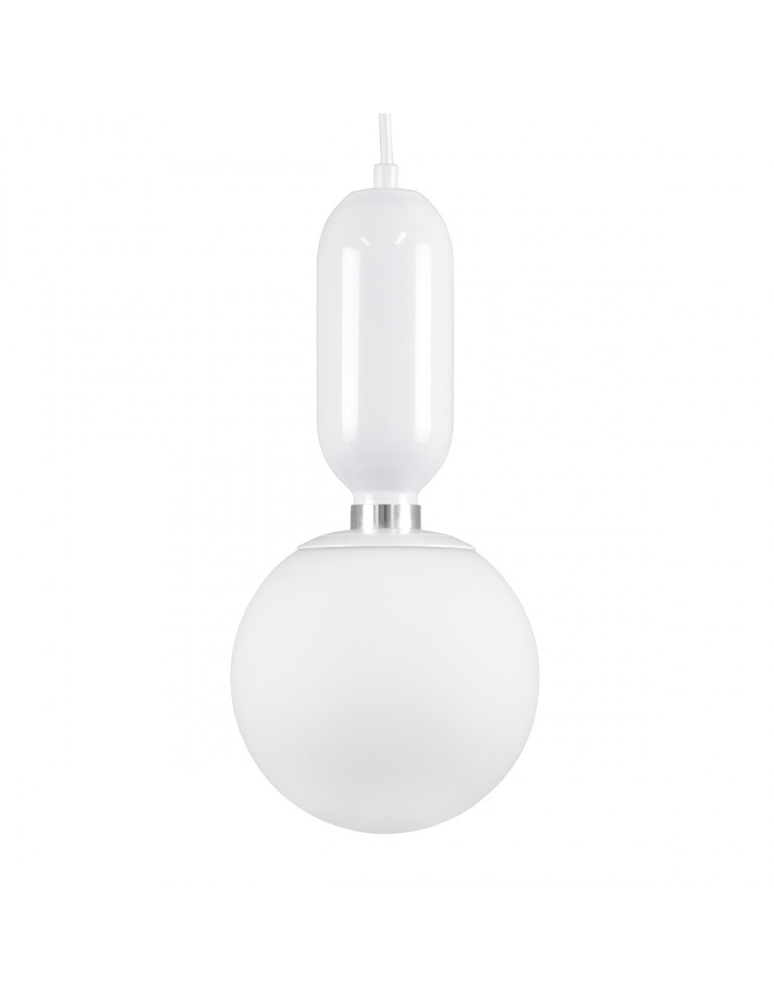 GloboStar® MAVERICK 00944 Μοντέρνο Κρεμαστό Φωτιστικό Οροφής Μονόφωτο 1 x E27 Λευκό Μεταλλικό Γυάλινο Μπάλα Φ15 x Υ33cm