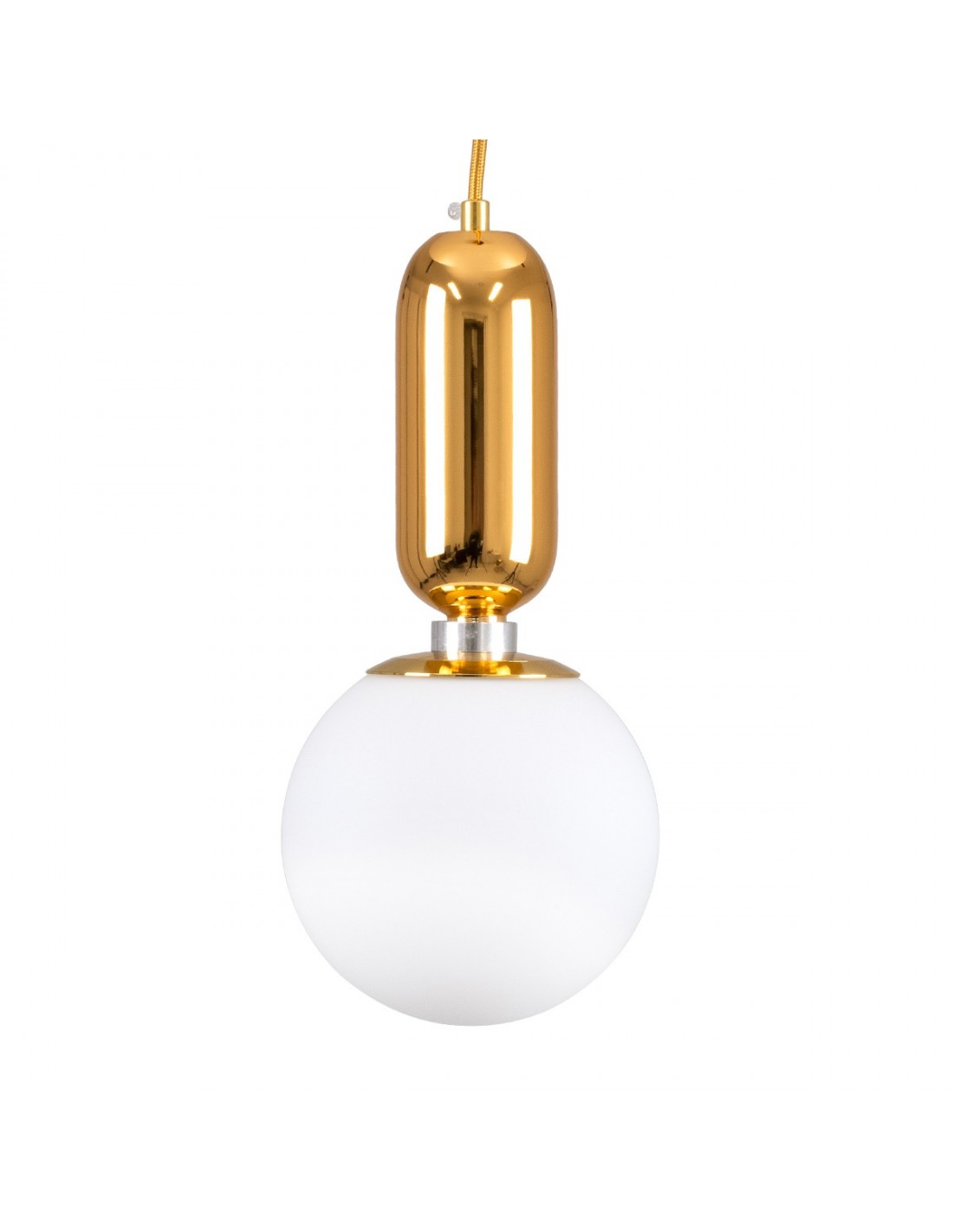 GloboStar® MAVERICK 00943 Μοντέρνο Κρεμαστό Φωτιστικό Οροφής Μονόφωτο 1 x E27 Χρυσό Μεταλλικό Γυάλινο Μπάλα Φ15 x Υ33cm