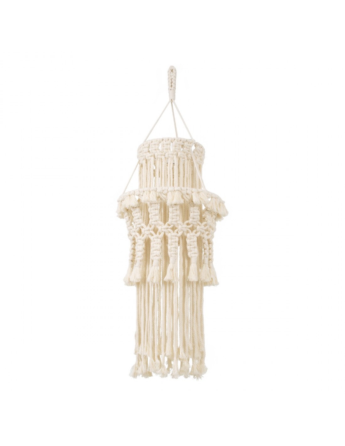 GloboStar® 36200 ETHIOPIA Καπέλο Φωτιστικού Boho - Μακραμέ Πλεκτό Χειροποίητο Μπεζ Υφασμάτινο με Σχοινί Φ30 x Υ90cm