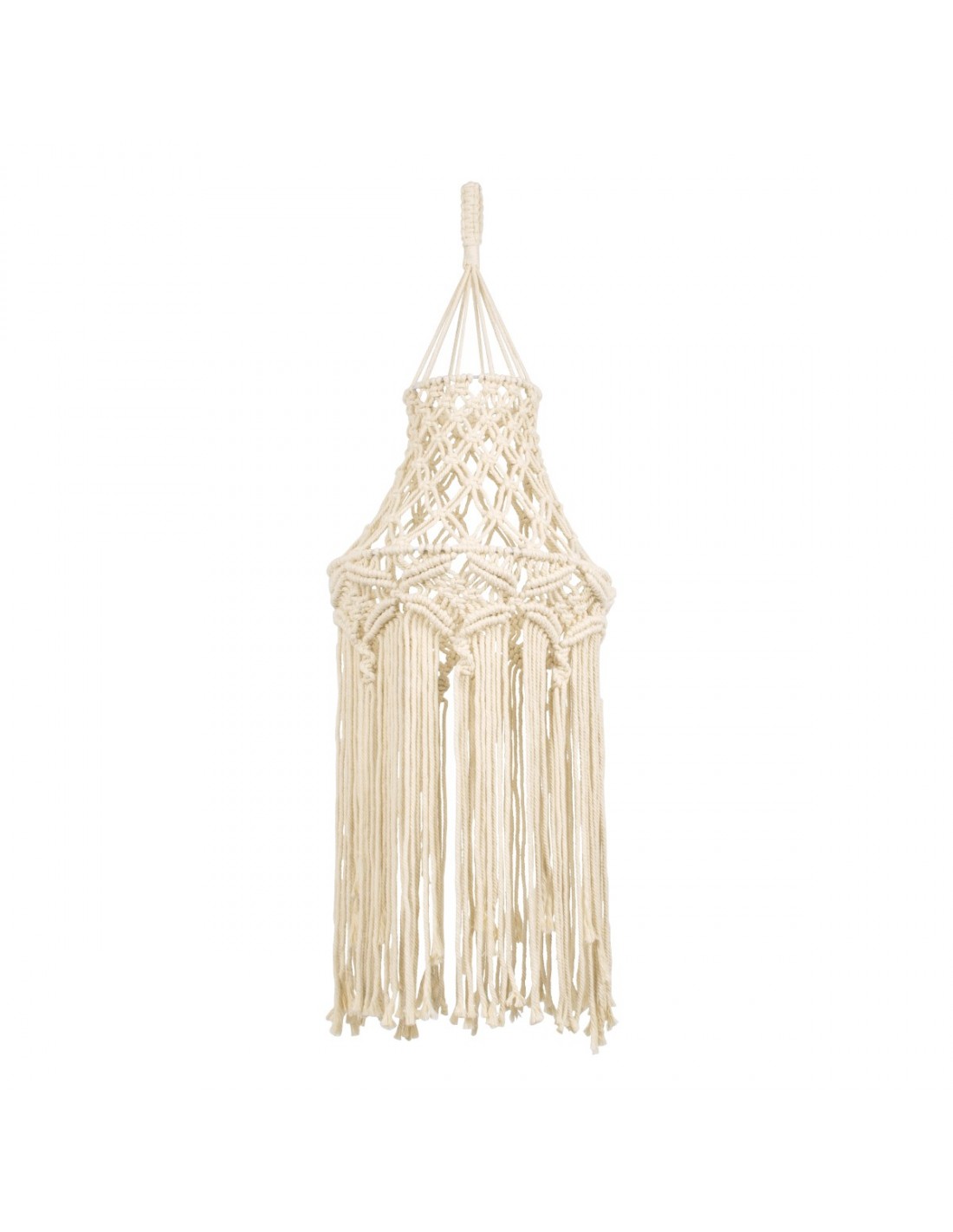 GloboStar® 36209 SOMALIA Καπέλο Φωτιστικού Μακραμέ Πλεκτό Χειροποίητο Μπεζ Υφασμάτινο με Σχοινί Φ30 x Υ90cm