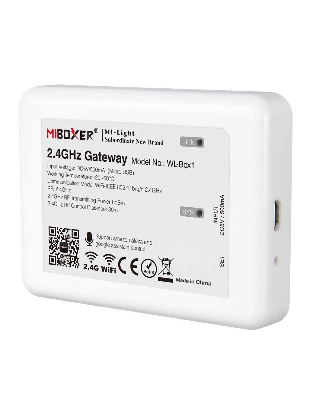 GloboStar® 73423 WL-Box1 Mi-BOXER Smart Bridge Gateway RF 2.4GHz to WiFi IEEE 802.11b/g/n DC 5V 500mA - IP20 - Μ9 x Π6.6 x Υ15cm - 5 Years Warranty