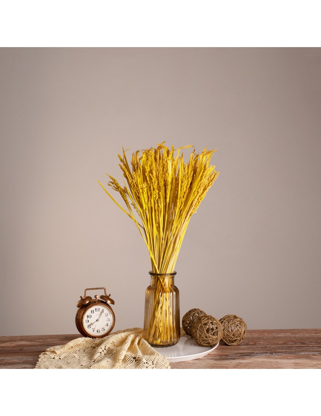 GloboStar® RISEGRASS 36506 Αποξηραμένο Φυτό Ρύζι - Μπουκέτο Διακοσμητικών Κλαδιών Μπεζ - Κίτρινο Υ60cm