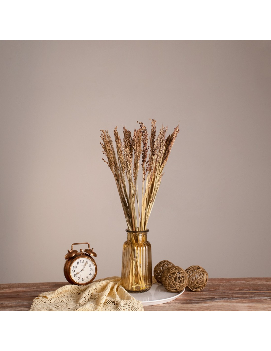 GloboStar® BROOMCORN 36540 Αποξηραμένο Φυτό Γλυκό Σόργο - Μπουκέτο Διακοσμητικών Κλαδιών Μπεζ - Καφέ Υ60cm