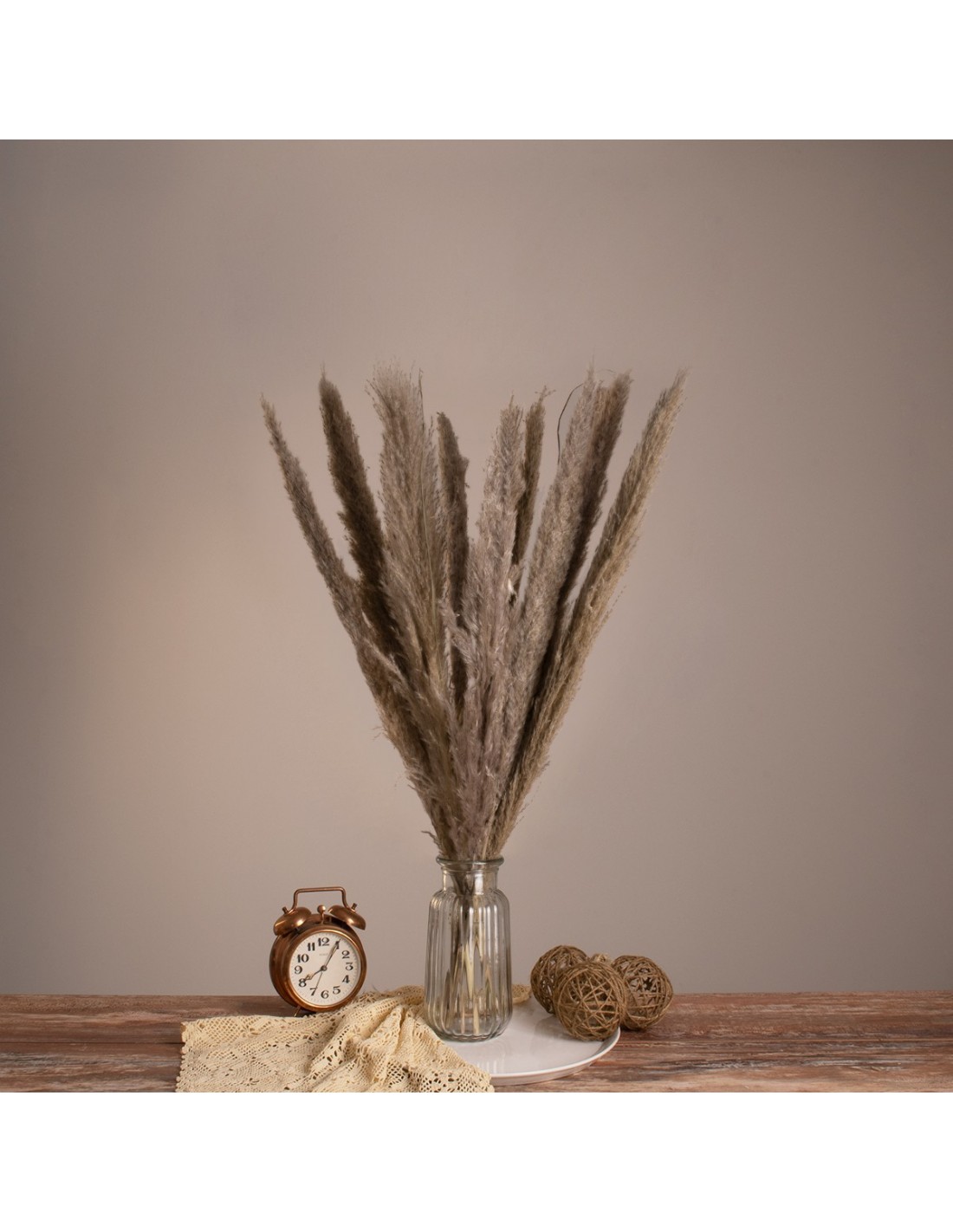 GloboStar® PAMPASGRASS 36511 Αποξηραμένο Φυτό Γρασίδι της Πάμπας - Μπουκέτο Διακοσμητικών Κλαδιών Καφέ - Γκρι Υ80cm