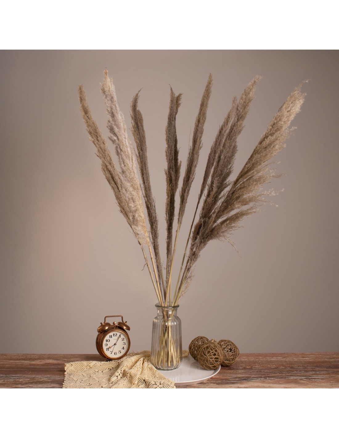 GloboStar® PAMPASGRASS 36512 Αποξηραμένο Φυτό Γρασίδι της Πάμπας - Μπουκέτο Διακοσμητικών Κλαδιών Καφέ - Γκρι Υ100cm
