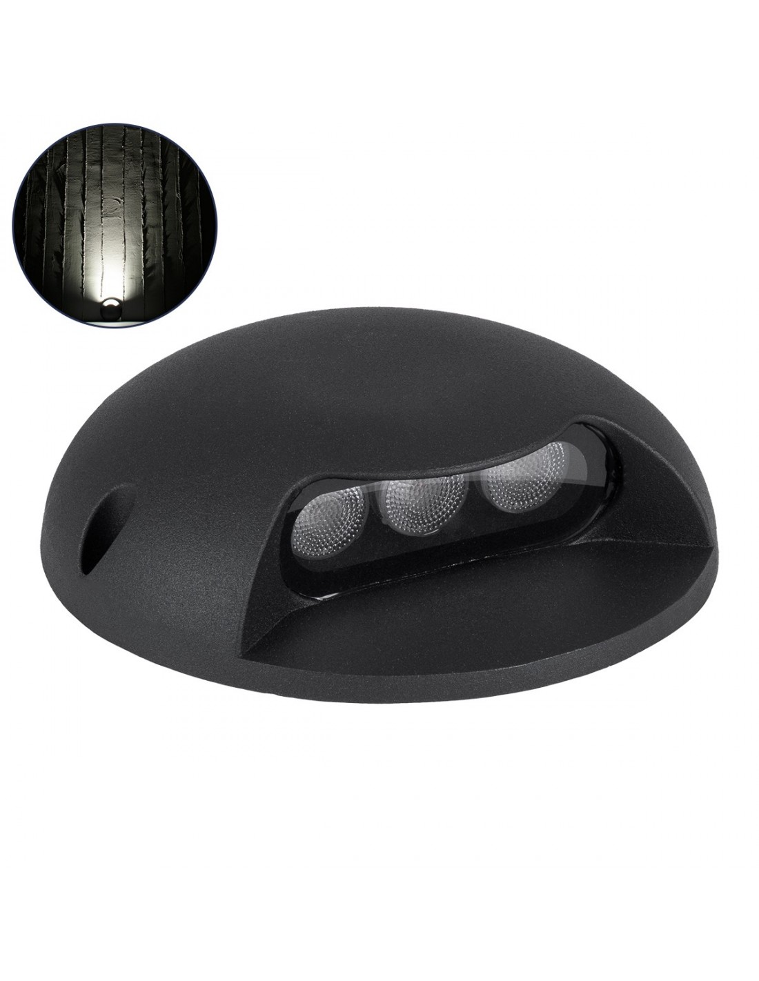 GloboStar® STEP-LUNA 90617 Επιφανειακό Φωτιστικό Σκαλοπατιού - Διαδρόμου LED 3W 345lm 10° DC 24V Αδιάβροχο IP65 Φ12 x Υ3cm Φυσικό Λευκό 4500K - Μαύρο - 3 Years Warranty