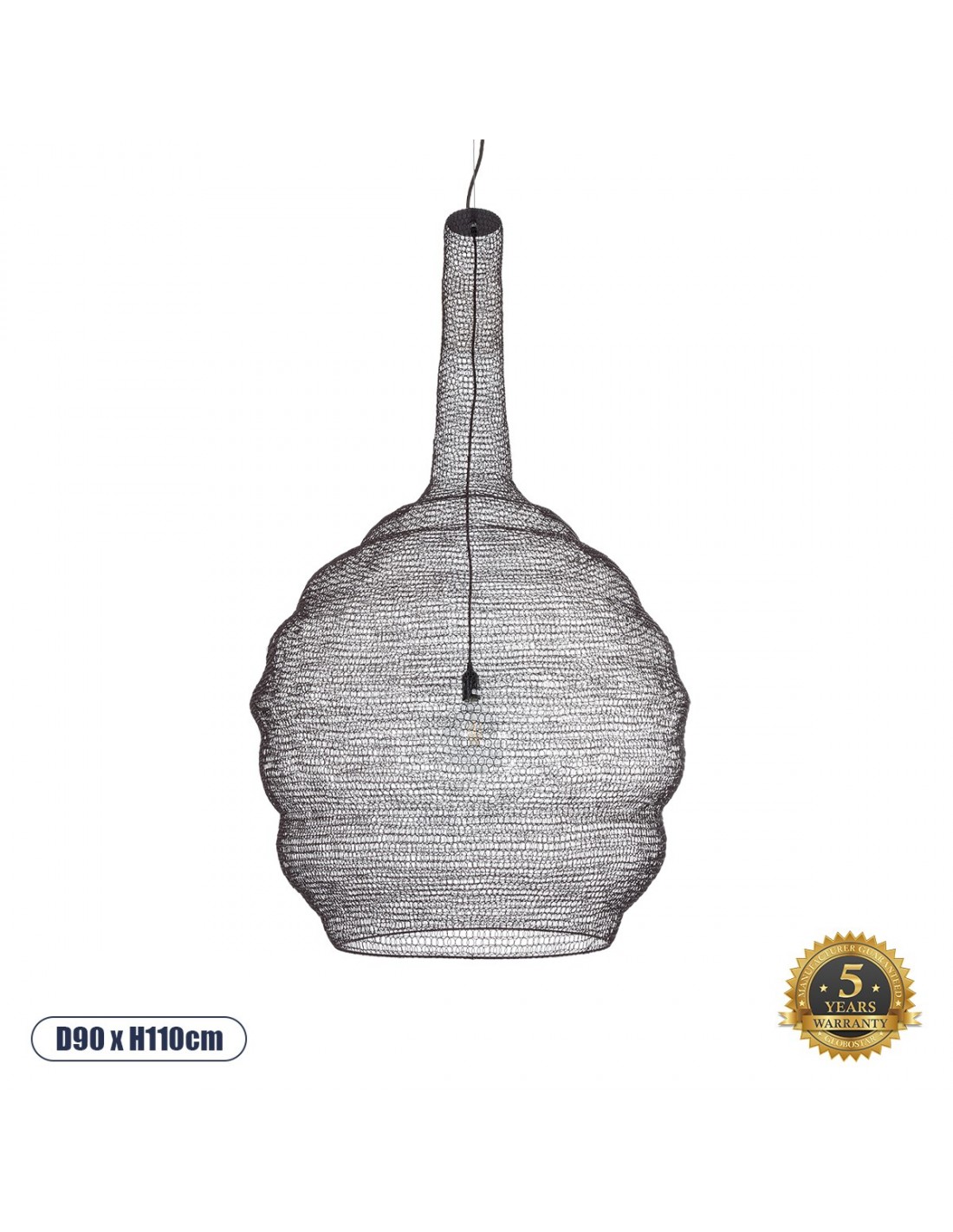 GloboStar® KENTUCKY 01887 Vintage Κρεμαστό Φωτιστικό Οροφής Μονόφωτο 1 x E27 AC220-240V IP20 - Φ90 x Υ110cm - Σκούρο Καφέ Μεταλλικό Πλέγμα