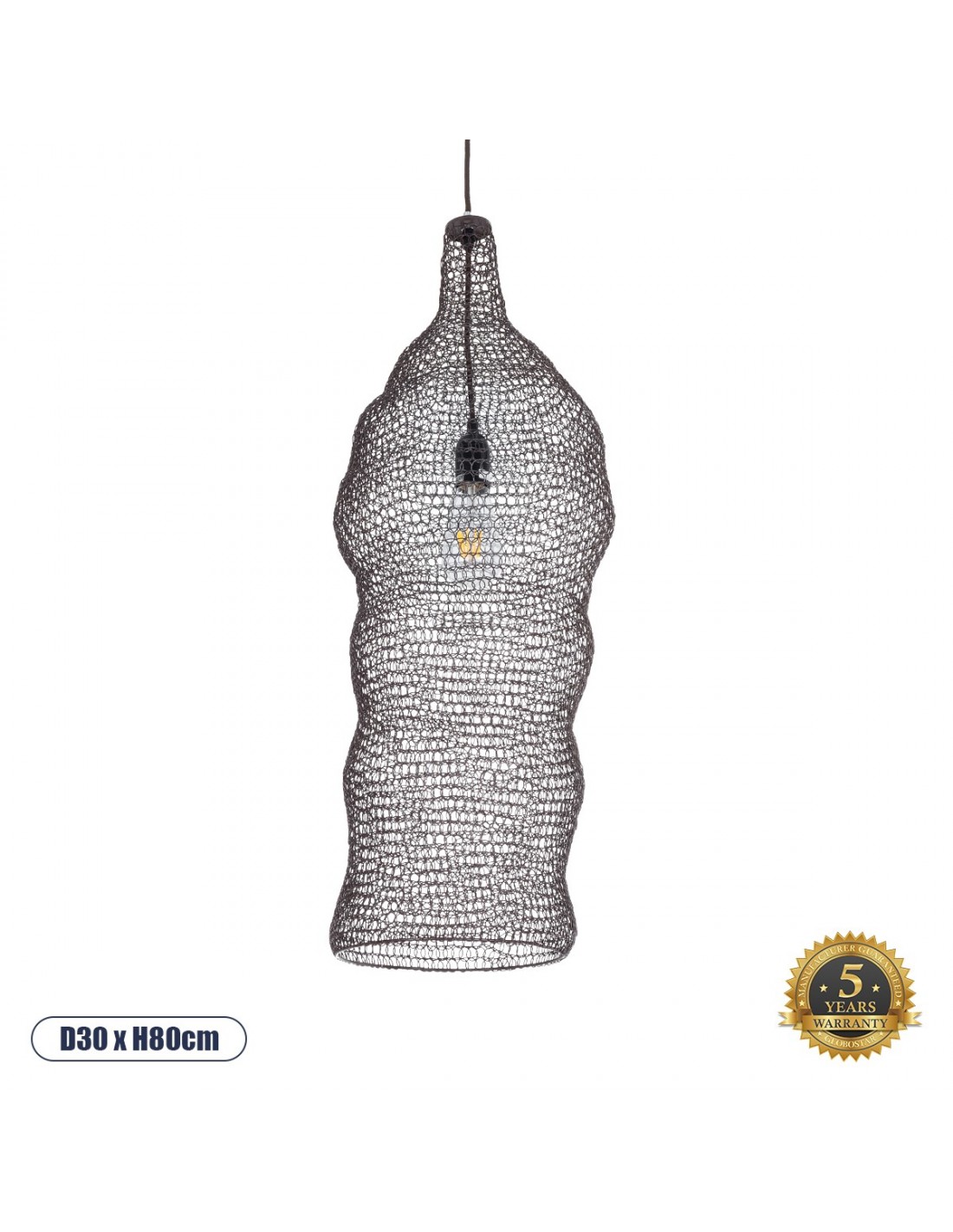 GloboStar® KENTUCKY 01905 Vintage Κρεμαστό Φωτιστικό Οροφής Μονόφωτο 1 x E27 AC220-240V IP20 - Φ30 x Υ80cm - Σκούρο Καφέ Μεταλλικό Πλέγμα