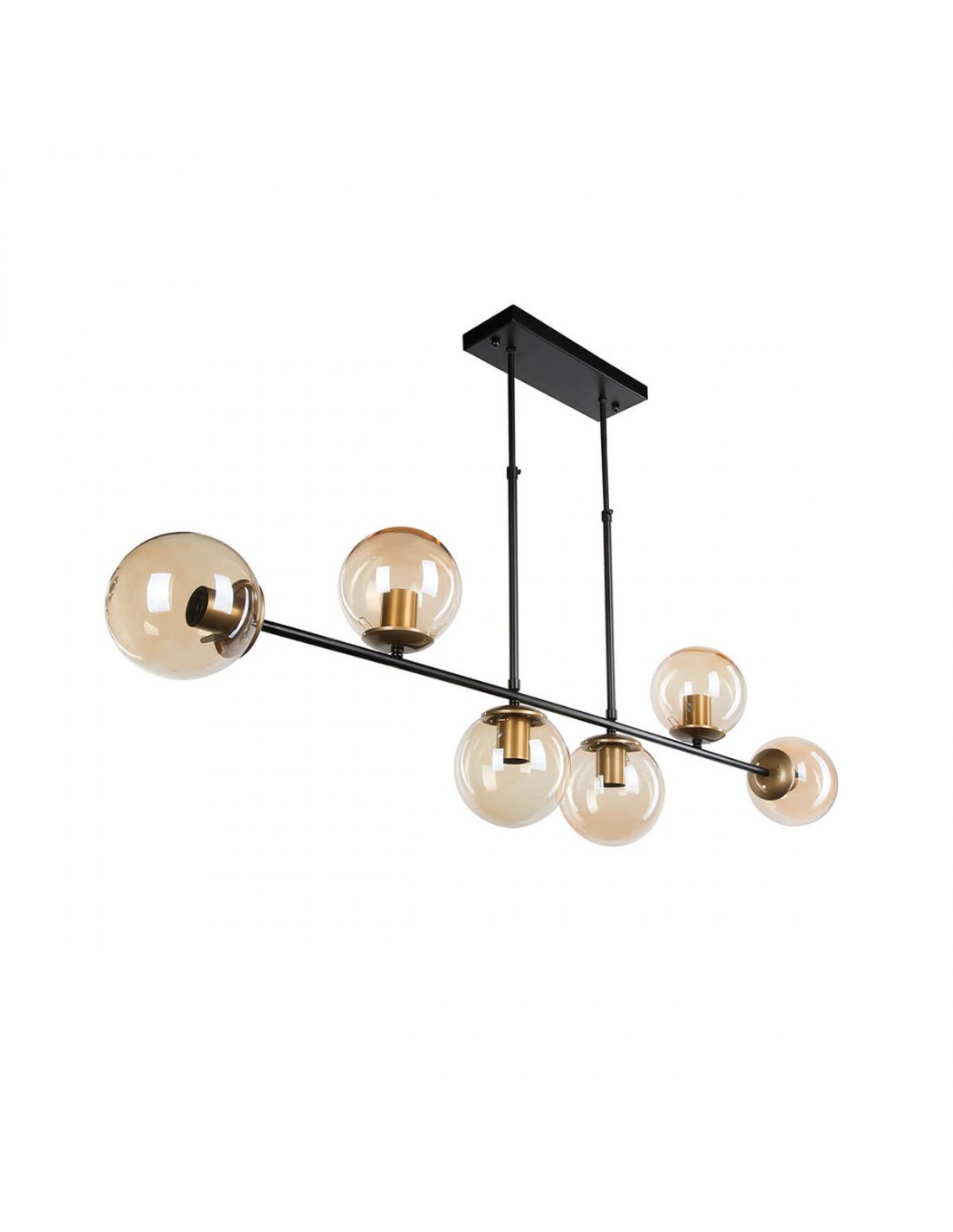 GloboStar® LATTICE 203-0016 Μοντέρνο Φωτιστικό Ράγα Πολύφωτο 6 x E27 IP20 Μαύρο Μέταλλο με Φιμέ Γυάλινες Μπάλες - Μ130 x Π20 x Υ70cm