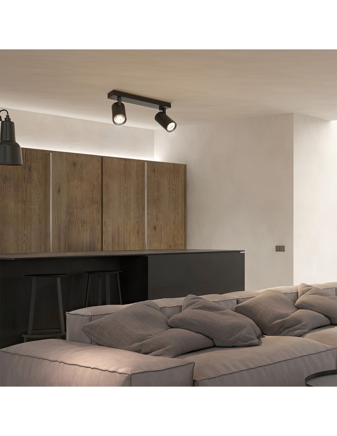 kelvo® SPOTA KLV-101-0136 Μοντέρνο Κινούμενο Φωτιστικό Σποτ Οροφής με Ντουί 2 x GU10 90° AC 220-240V IP20 - Μαύρο Ματ - Μ30 x Π6 x Υ14.5cm