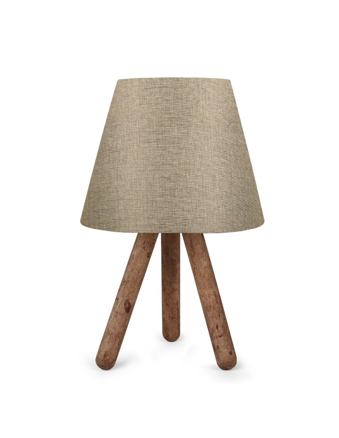 GloboStar® CAP 204-0067 Μοντέρνο Eπιτραπέζιο Φωτιστικό Πορτατίφ Μονόφωτο 1 x E27 IP20 Καφέ Ξύλο με Μπεζ Ύφασμα - Μ22 x Π22 x Υ33cm