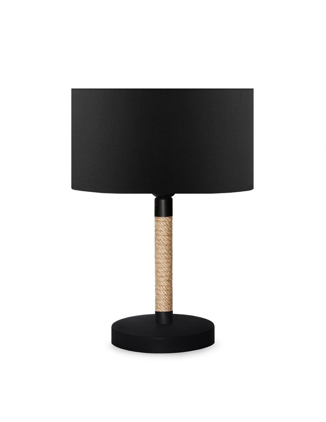 GloboStar® STRING 204-0072 Μοντέρνο Eπιτραπέζιο Φωτιστικό Πορτατίφ Μονόφωτο 1 x E27 IP20 Μαύρο Mέταλλο, Μπεζ Σχοινί με Μαύρο Ύφασμα - Μ24 x Π24 x Υ37cm