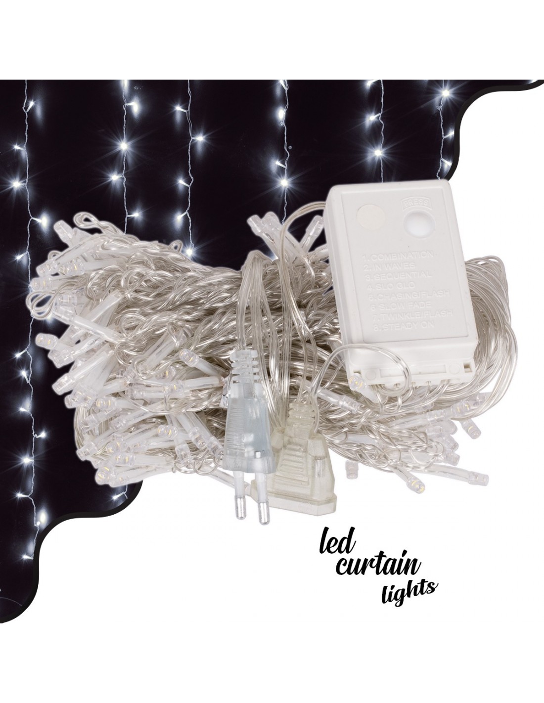 85801 Διακοσμητική Κουρτίνα 3 x 2 Μέτρα με Controller 8 Προγραμμάτων Φωτισμού - Επεκτεινόμενη 240 LED 6W AC 230V με Διάφανο Καλώδιο & Πρίζα Schuko IP20 Ψυχρό Λευκό 6000K Μ3 x Υ2m