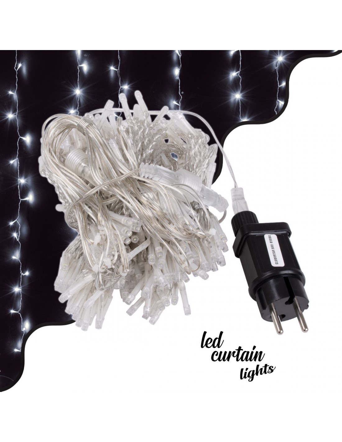 85804 Διακοσμητική Κουρτίνα 3 x 3 Μέτρα με Controller 8 Προγραμμάτων Φωτισμού - Επεκτεινόμενη 300 LED 6W AC 230V με Διάφανο Καλώδιο & Πρίζα Schuko Αδιάβροχη IP44 Ψυχρό Λευκό 6000K Μ3 x Υ3m