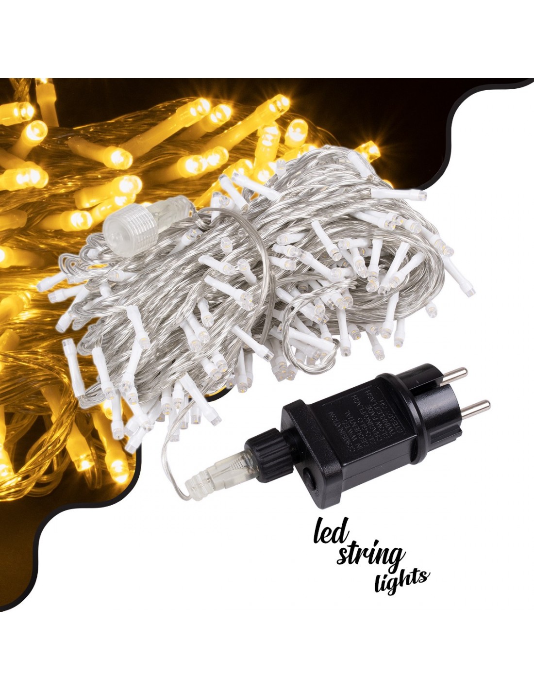 85836 Διακοσμητική Γιρλάντα 23 Μέτρα με Controller 8 Προγραμμάτων Εναλλαγών Φωτισμού - Επεκτεινόμενη 200 LED 3.6W AC 230V με Διάφανο Καλώδιο & Πρίζα Schuko Αδιάβροχη IP44 Θερμό Λευκό 3000K Μ23m