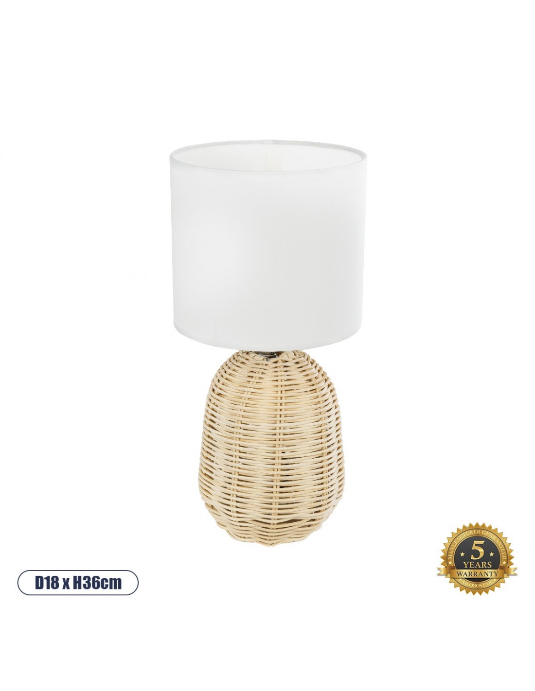 GLOBOSTAR® HASUMI 01958 Boho Επιτραπέζιο Φωτιστικό Πορτατίφ με Ντουί 1 x E27 AC 220-240V IP20 - Μπεζ & Λευκό - Μ18 x Π18 x Υ36cm