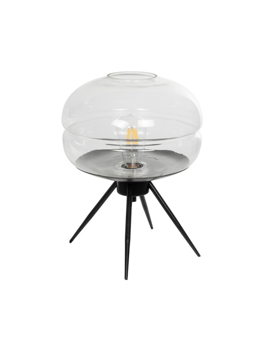 GloboStar® JAVAN 999-0036 Μοντέρνο Επιτραπέζιο Φωτιστικό Πορτατίφ Μονόφωτο 1 x E27 IP20 Διάφανο Γυαλί με Μαύρο Μέταλλο - Μ30 x Π30 x Υ19cm