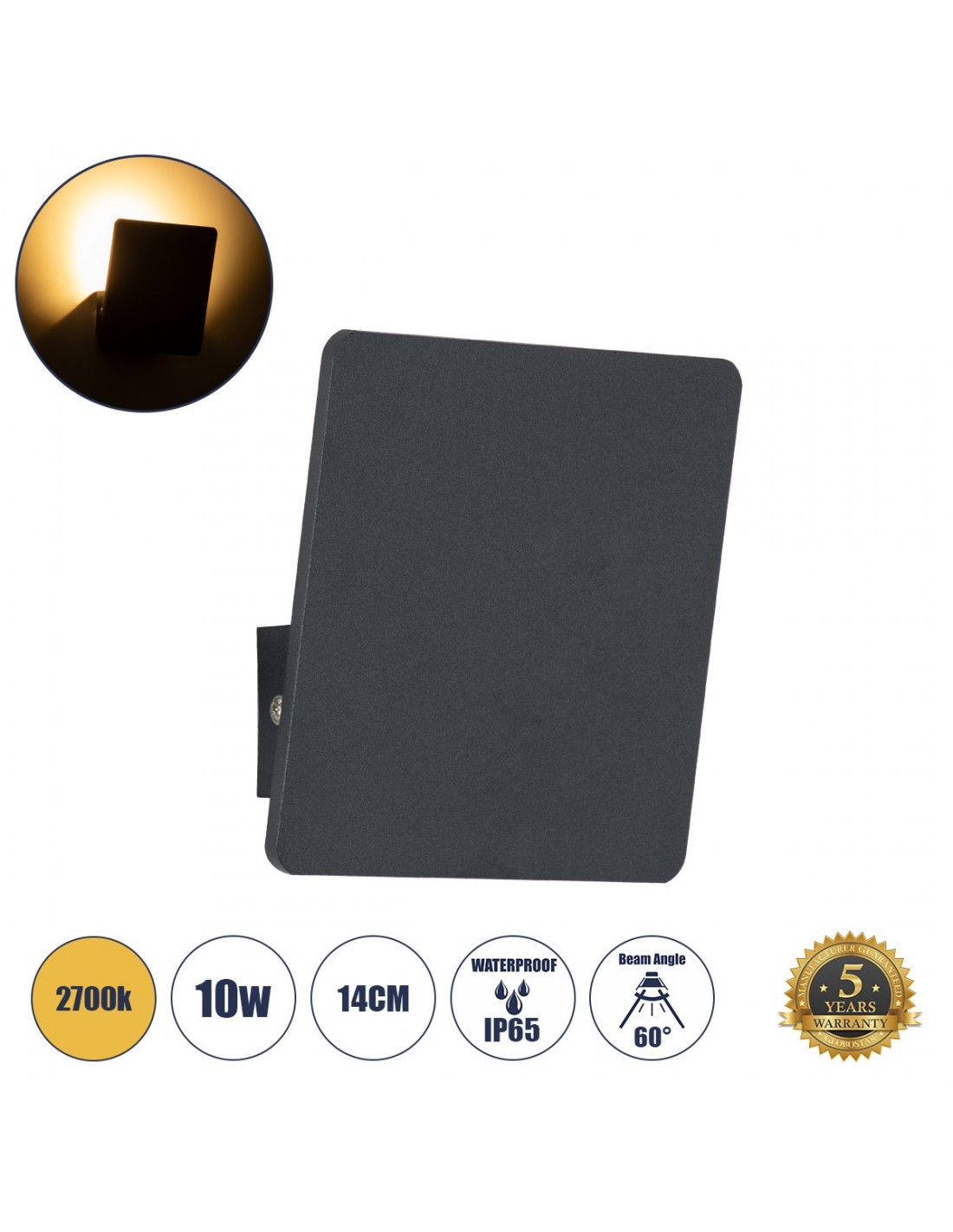 GLOBOSTAR® CUADRADO 60571 Μοντέρνο Φωτιστικό Τοίχου - Απλίκα LED 10W 1000lm 60° AC 220-240V Αδιάβροχο IP65 Θερμό Λευκό 2700K - Bridgelux COB Chip & TÜV SÜD Driver - Μαύρο Ματ - Μ14 x Π14 x Υ4.5cm - 5 Χρόνια Εγγύηση