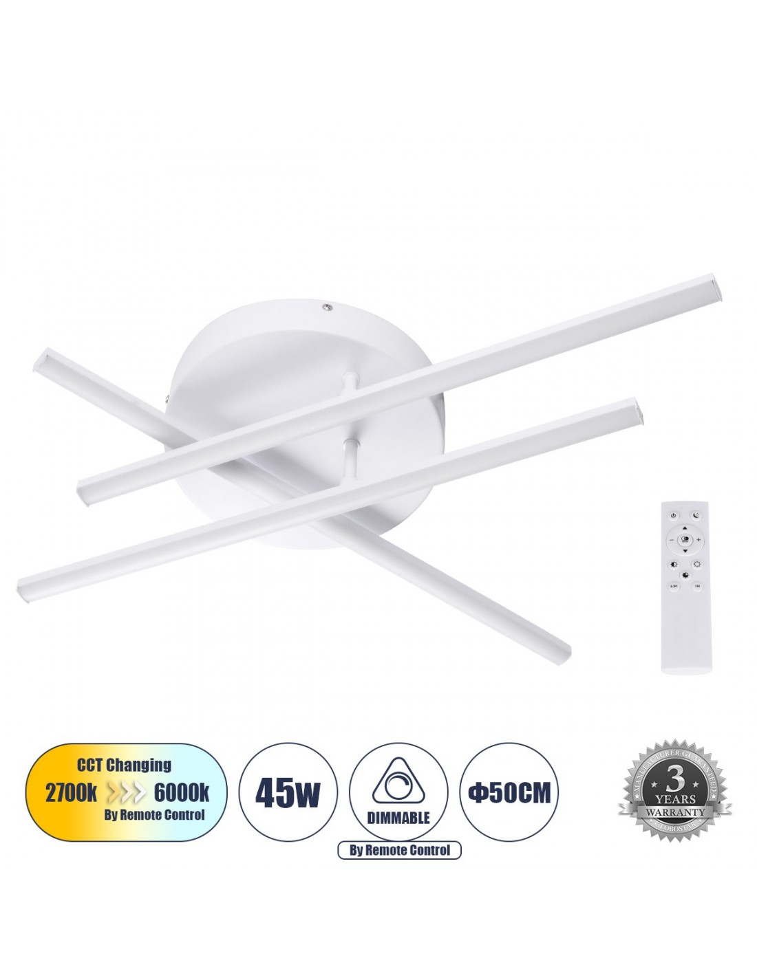 GLOBOSTAR® DRACO 61094 Μοντέρνο Φωτιστικό Οροφής LED 45W 5535lm 120° AC 220-240V IP20 Ρυθμιζόμενο Λευκό CCT με Χειριστήριο από 2700K έως 6000K Dimmable - Lumileds SMD Chip - Λευκό Ματ - Μ50 x Π50 x Υ11cm - 3 Χρόνια Εγγύηση