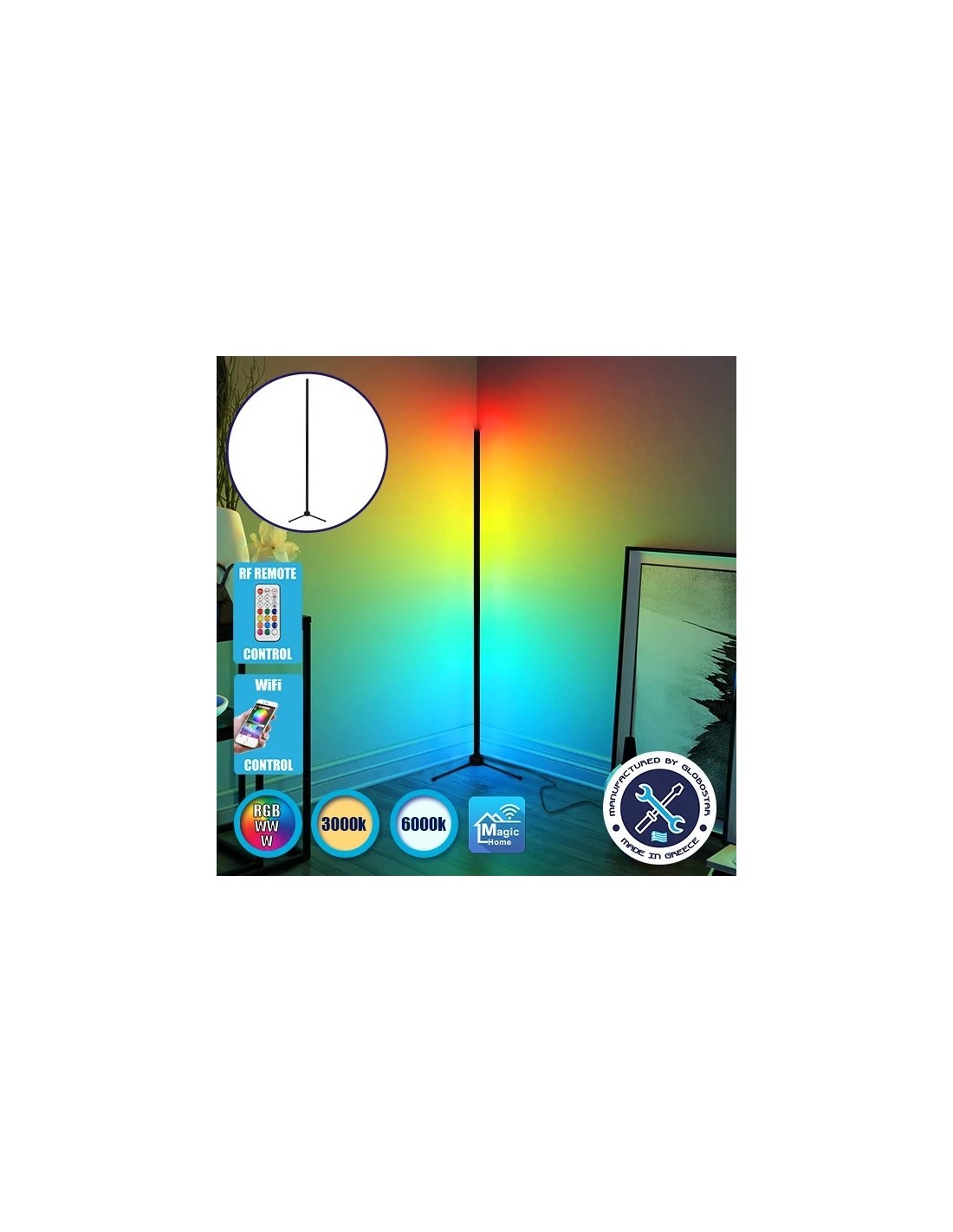 Μοντέρνο Minimal Επιδαπέδιο Μαύρο Φωτιστικό 200cm LED 40 Watt με Ασύρματο Χειριστήριο 2.4G RF, Λειτουργία μέσω WiFi APP & Dimmer RGBW+WW Πολύχρωμο - Ψυχρό - Ημέρας - Θερμό GloboStar ALIEN Design GLOBO-200-12