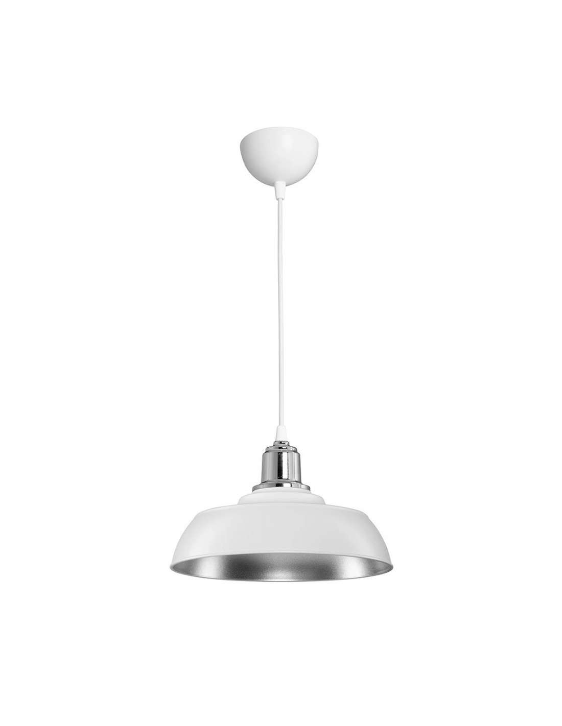 GLOBOSTAR® LOAN 203-0284 Μοντέρνο Κρεμαστό Φωτιστικό Οροφής με Ντουί 1 x E27 AC 220-240V IP20 - Λευκό & Ασημί - Μ25.5 x Π25.5 x Υ17cm